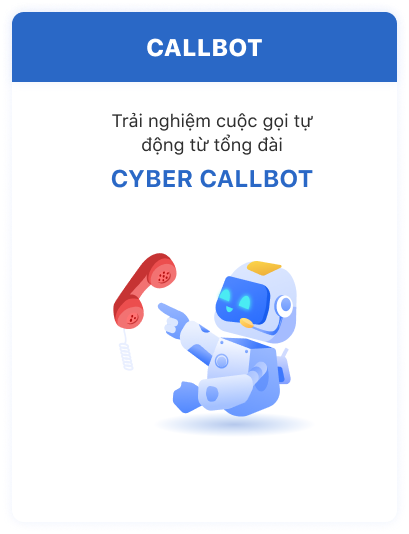 Ứng dụng các công nghệ xử lý hội thoại, giọng nói Tiếng Việt tốt nhất hiện nay. Viettel Cyberbot là nền tảng giúp doanh nghiệp xây dựng hệ thống tổng đài tự động qua Callbot và Chatbot. Viettel Cyberbot tương tác thân thiện và tự nhiên với khách hàng, giúp doanh nghiệp chuyển đổi số và tối ưu nguồn lực chăm sóc khách hàng.